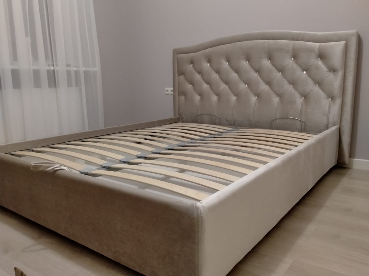 • Очень понравилась кровать Табаско из за красивого изголовья,посмотрела качесто, работу по обтяжке и каретной стяжки,качество изготовления-Просто влюбилась в кровать.Очень красивая и элегантная кровать.Купила,и теперь она меня радует каждый день.